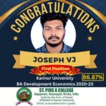 Our alumni are a testament to the department’s academic rigor and commitment to excellence. Graduates are well-placed in reputed multinational corporations (MNCs), and many have pursued PhDs, now serving as faculty in prestigious institutions including Universities, National Institutes of Technology (NITs), and Indian Institutes of Management (IIMs). In its three decades of existence, the college has produced numerous exemplary alumni, including Bineesh Balan, secured admission in the prestigious London School of Economics, Dr. Bibin K. Joy, who is placed at the World Bank and Dr. Renjith R, Assistant Professor in IIM.