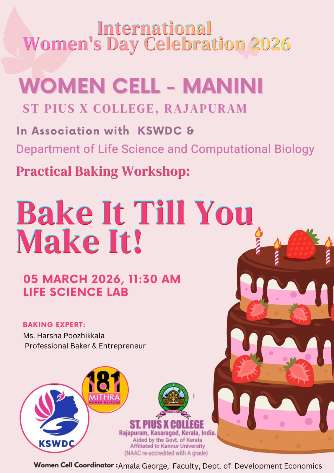 The Women’s Cell is delighted to organize a Skill-Based Baking Class as part of International Women’s Day Celebration 2026. This hands-on session aims to provide practical exposure to baking techniques. The workshop will be led by a Baking Expert, offering participants an opportunity to learn professional tips and techniques in a friendly and interactive environment.