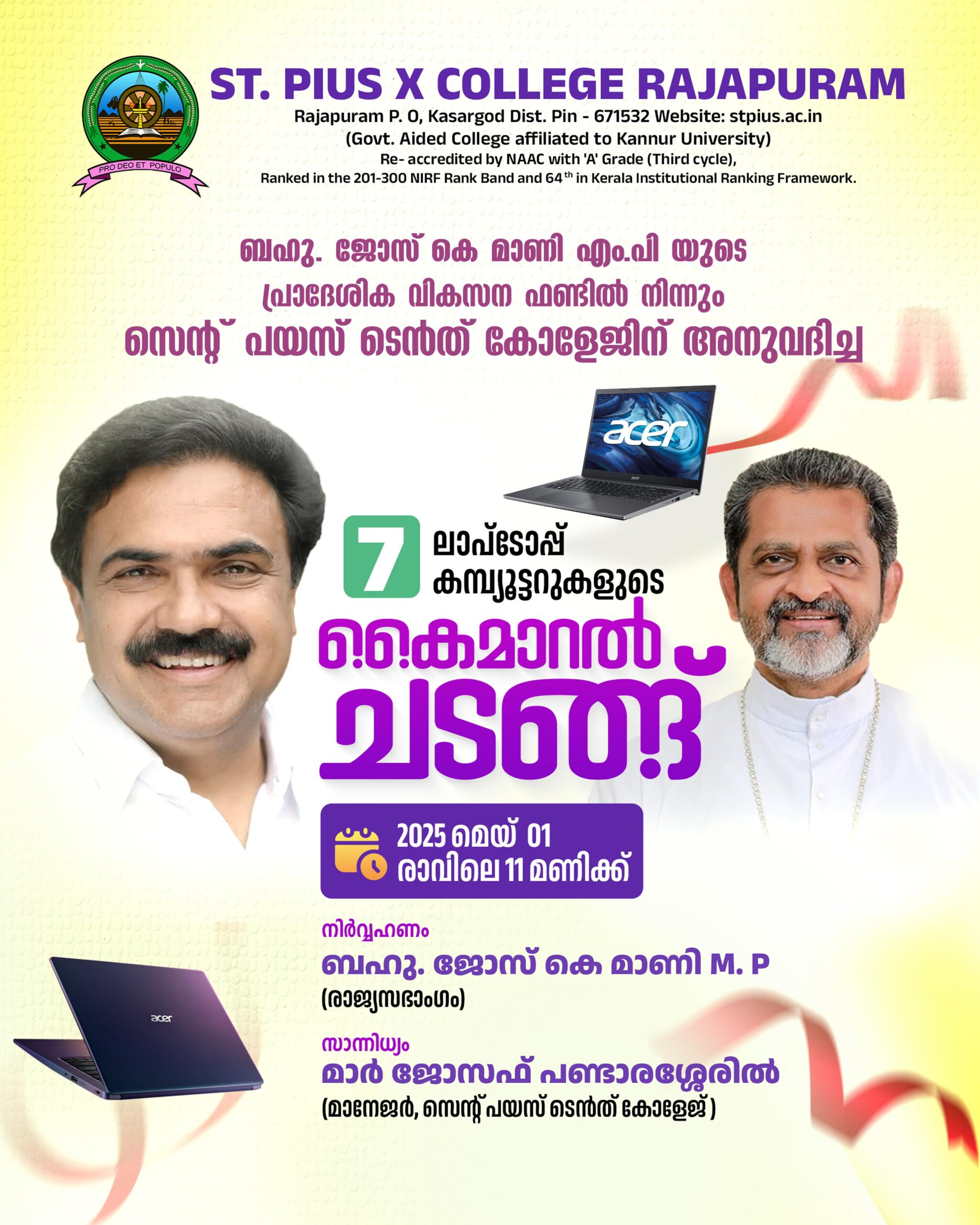 Laptop Distribution This event has expired Start Time 10:00 am May 1, 2025 Finish Time 12:05 pm May 1, 2025 Address Seminar Hall Share: Previous Event Aksharayanam Next Event College Day