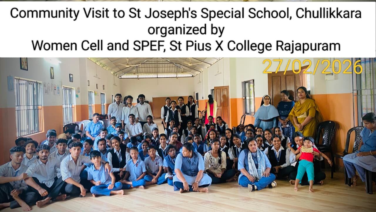 The Women Cell and St. Pius Economic Forum of St. Pius X College, Rajapuram organized a Community Visit to St. Joseph’s Special School, Chullikkara on 27 February 2026. The programme was conducted as part of the extension and social outreach activities of the college, aiming to promote social responsibility, inclusiveness, and empathy among students.